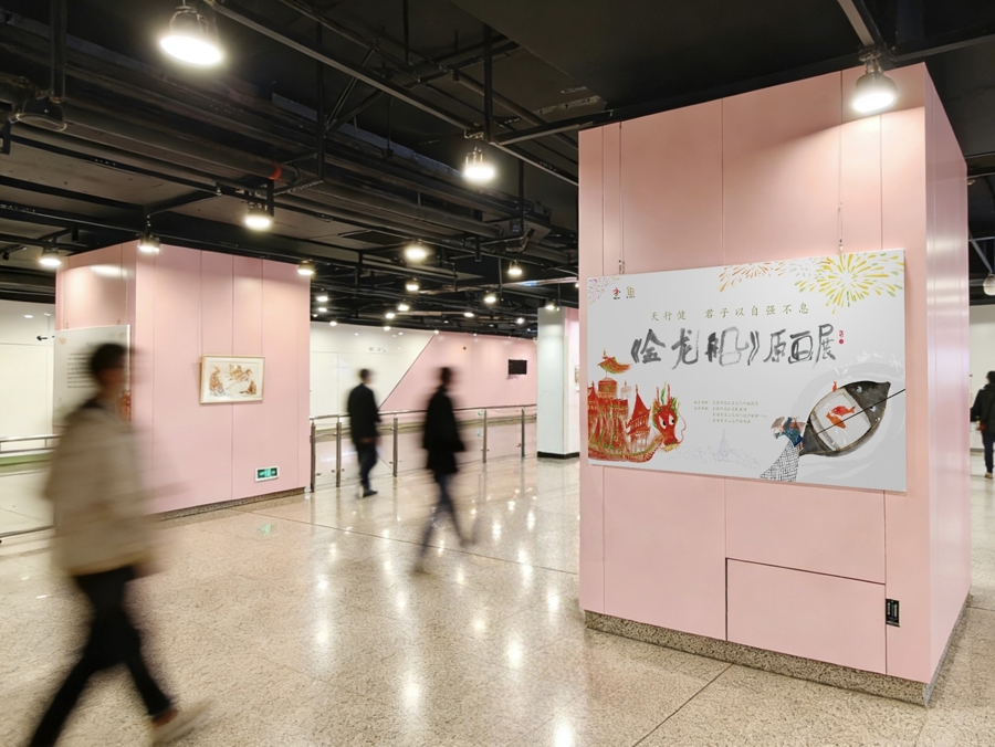 春节前夕,上海轨道交通15号线顾村公园站变身非遗艺术展厅。“天行健 君子以自强不息——《金龙船》原画展”在此正式启幕,让市民在日常通勤中便能开启一场“与美同行”的文化邂逅,也为宝山区图书馆马年新春系列活动拉开了序幕。