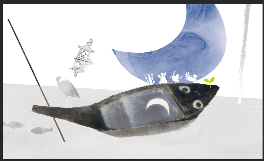 《金龙船》是宝山区图书馆联合区文化遗产保护中心、区作家协会共同打造的“金”字系列非遗技艺传承绘本之一,由水墨画家梁川与插画师黄郁葱围绕国家级非遗“端午节——罗店划龙船习俗”联袂创作。展览精选二十余幅原稿,以清灵隽秀的墨色与流畅线条,展现出宝山罗店水乡的氤氲之气与传承人自强不息的精神底色。